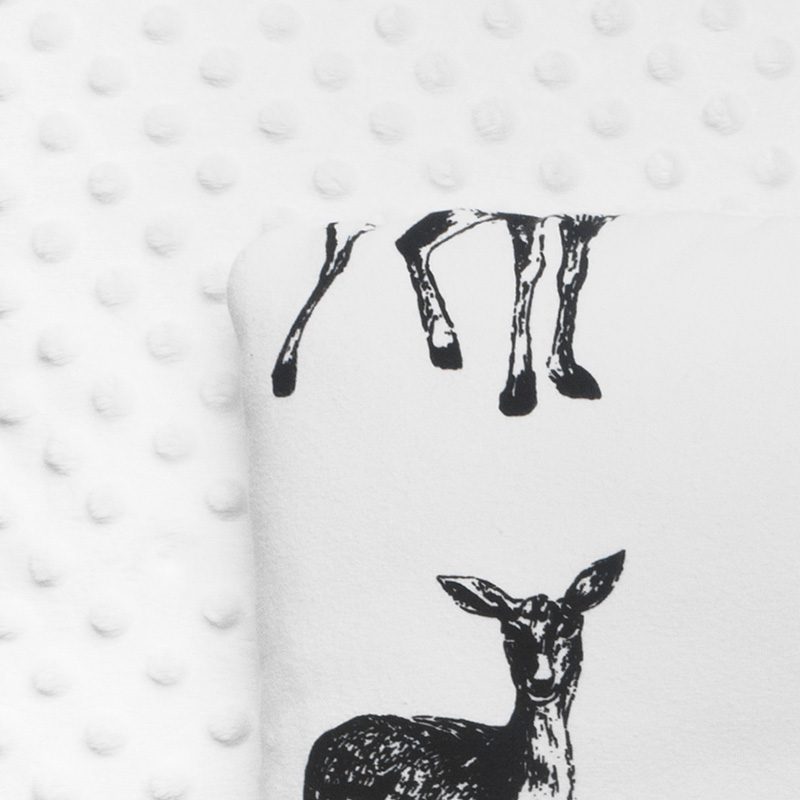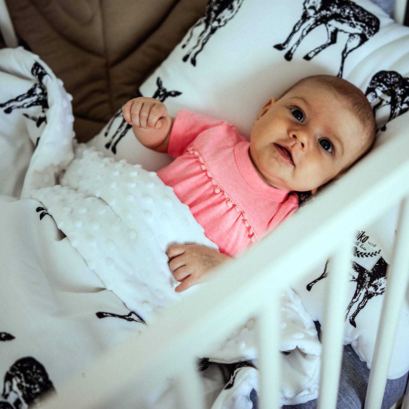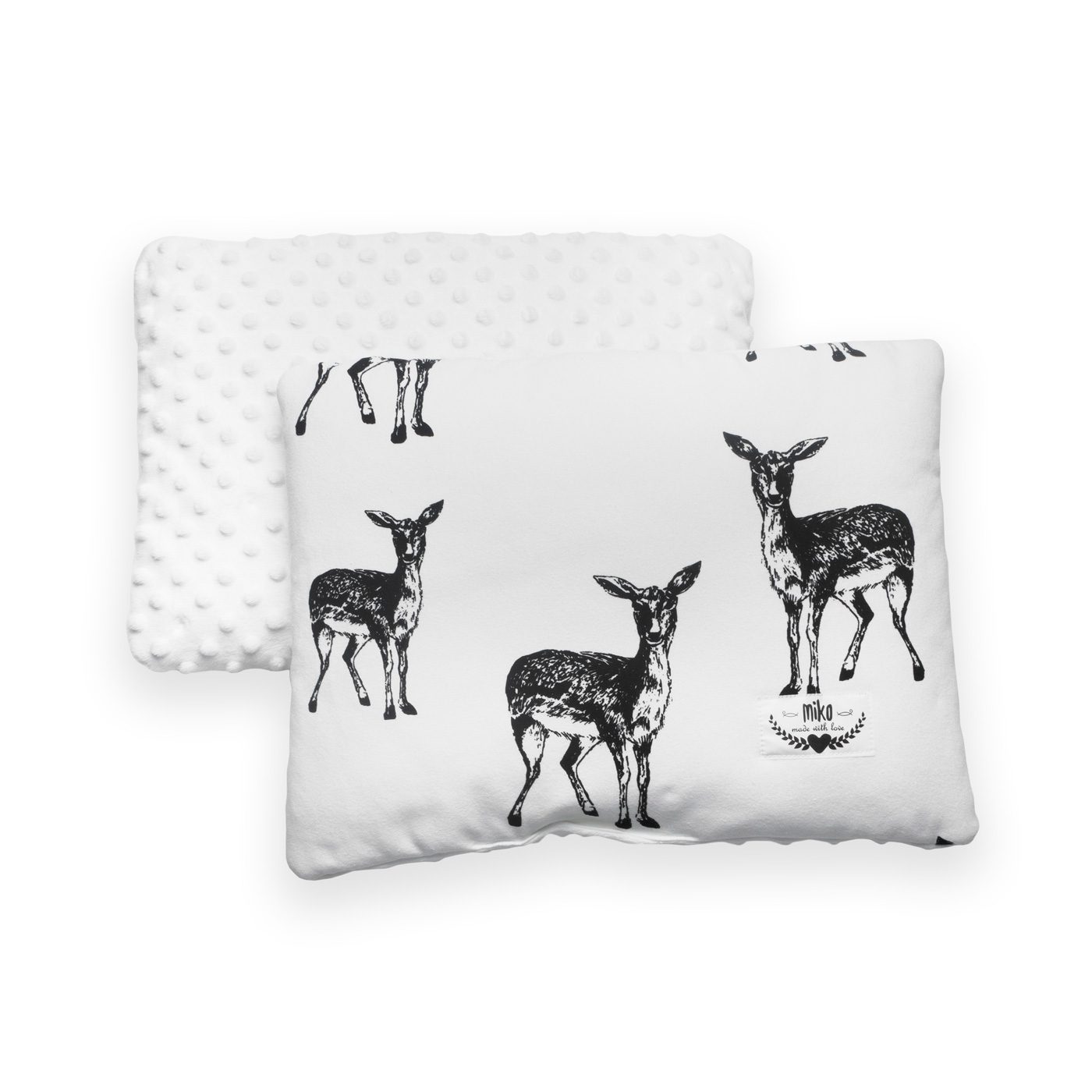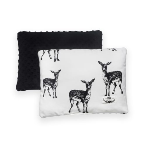 Wykonana z mięciutkiego MINKY oraz dzianiny. W środku wszyta jest podwójna warstwa włókniny, dlatego poduszeczka jest płaska i nadaje się od pierwszych dni życia dziecka.
