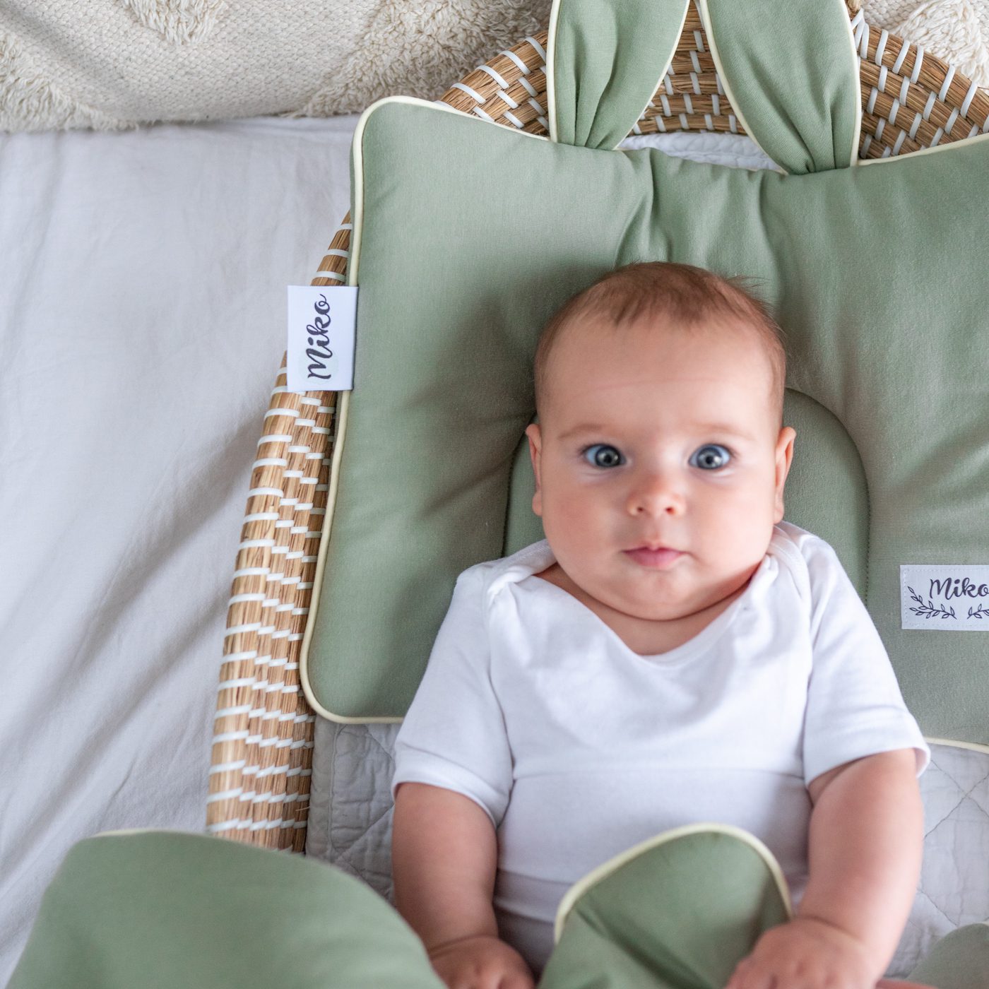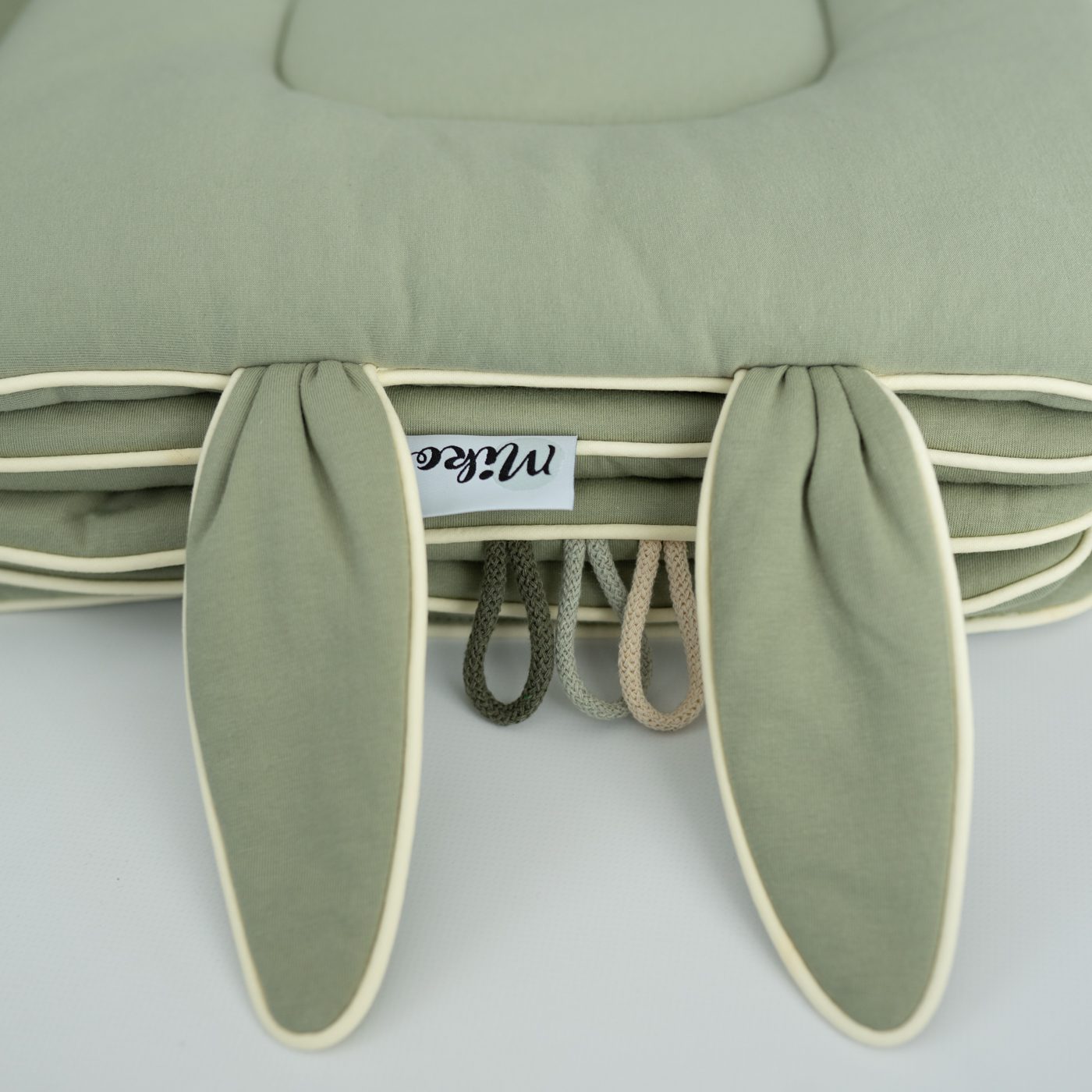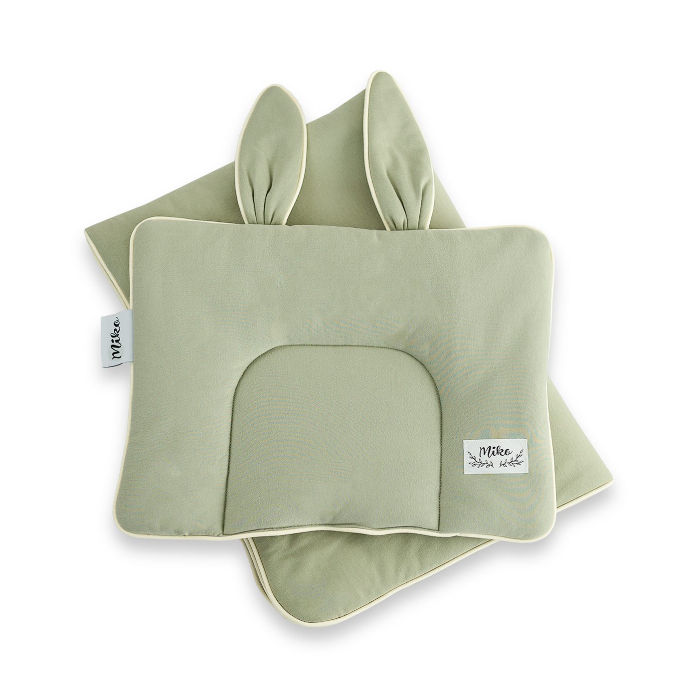 Komplet stanowi kołderka + płaska poduszka z ślicznymi uszkami.