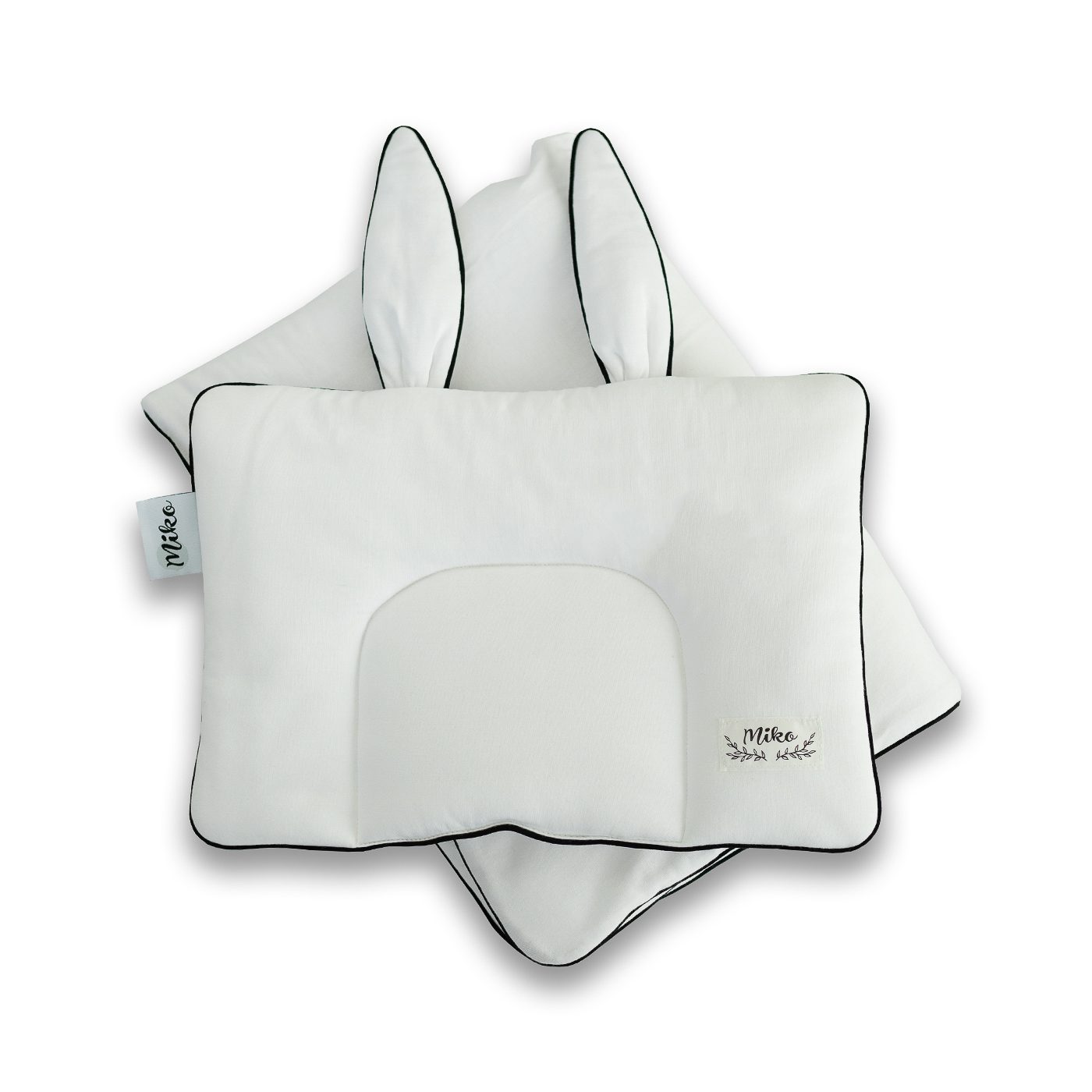 Komplet stanowi kołderka + płaska poduszka z ślicznymi uszkami.