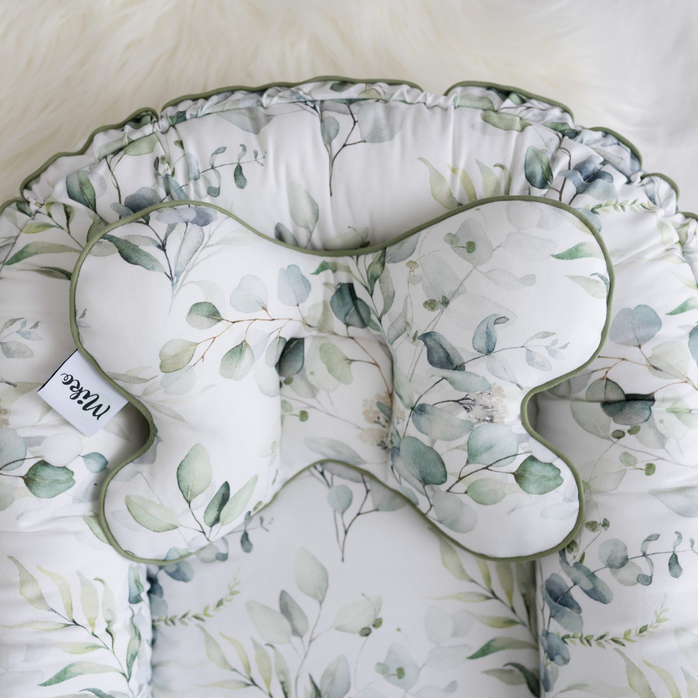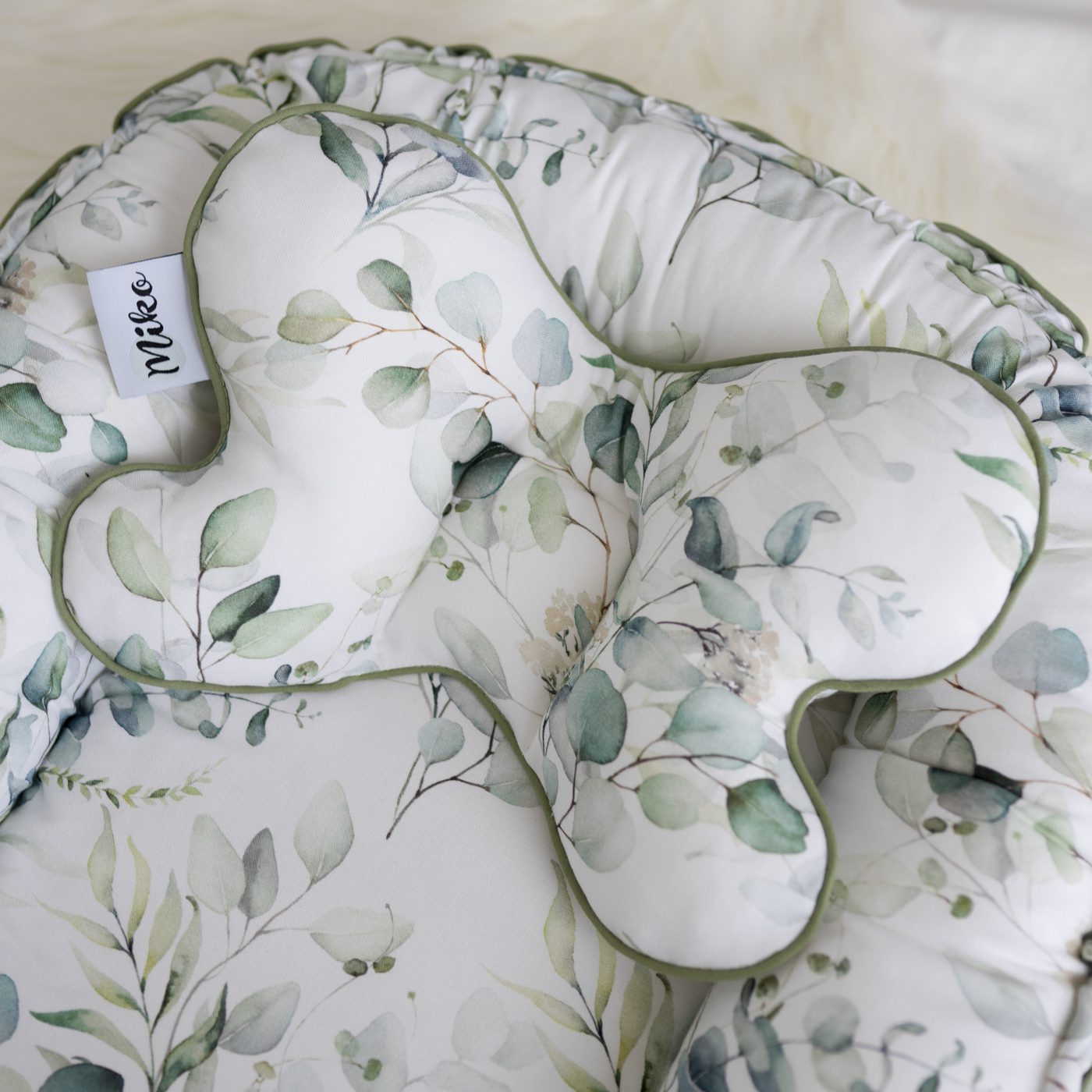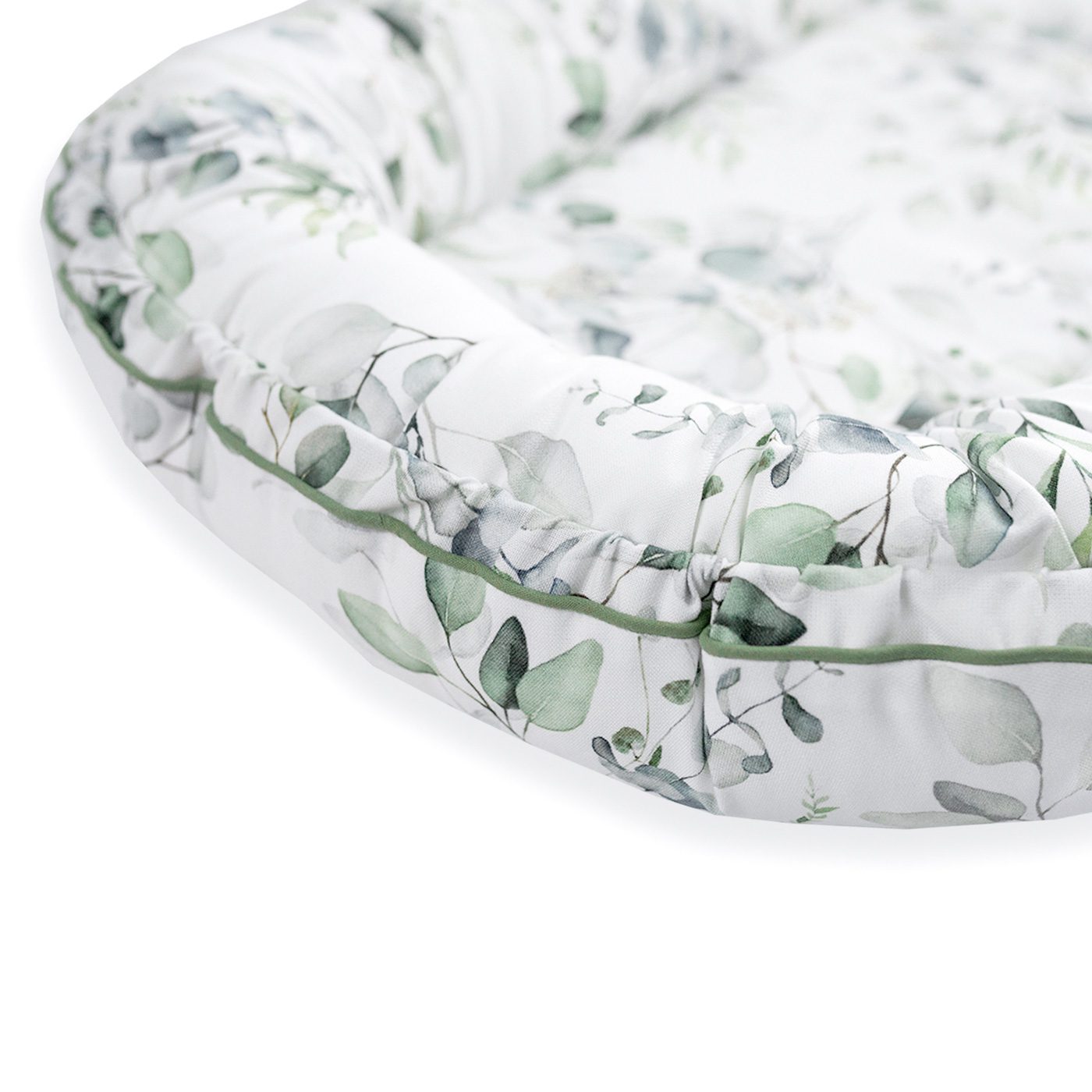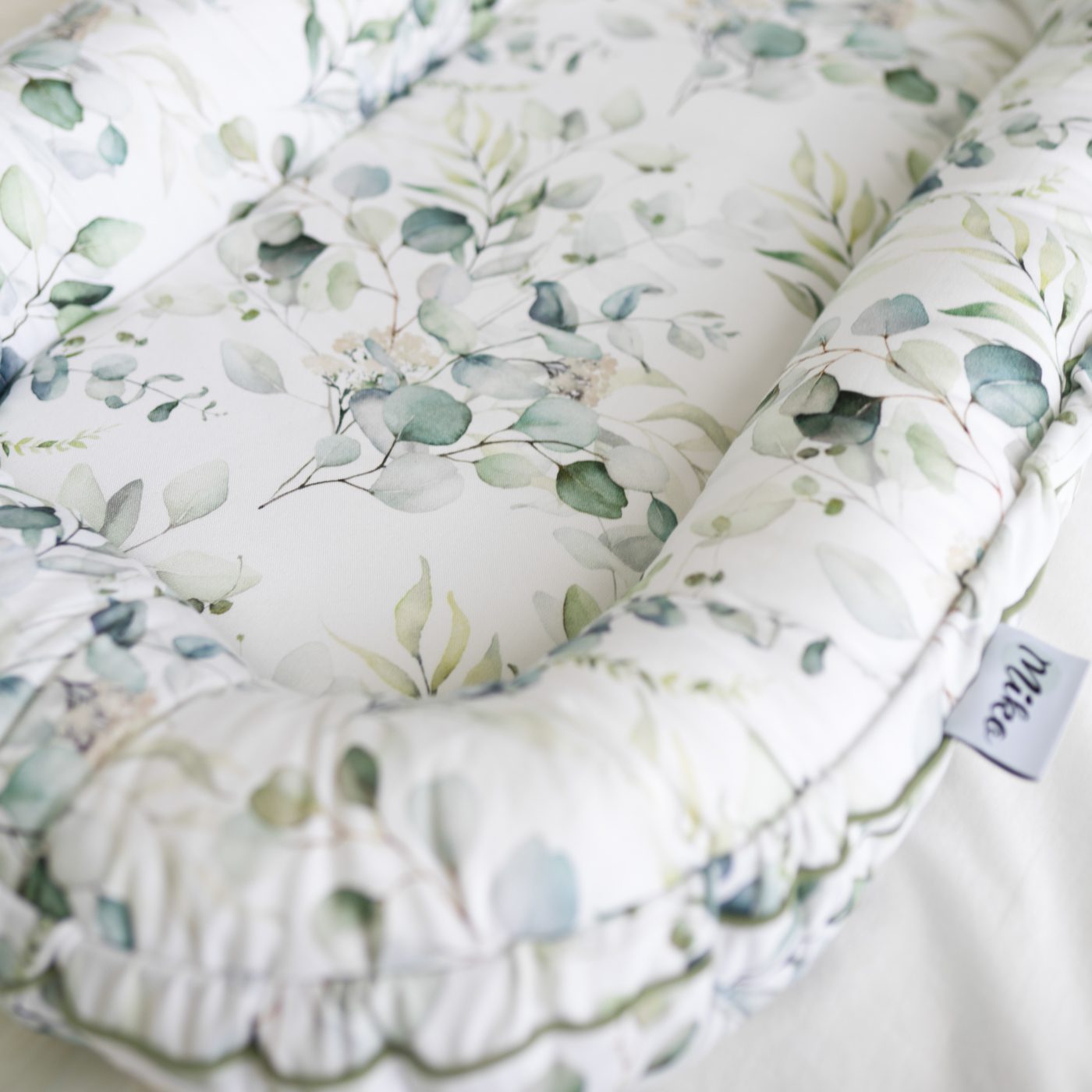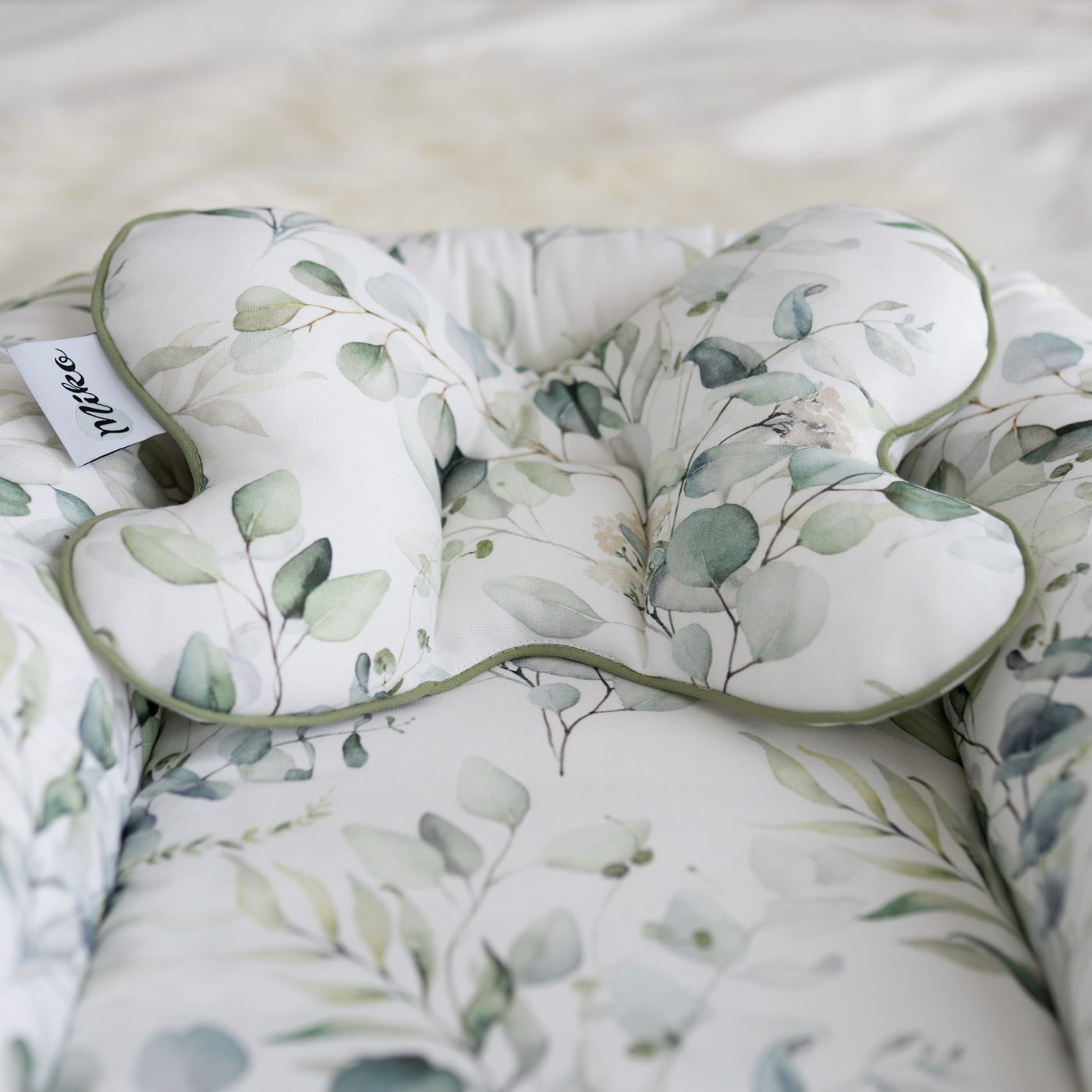Kokon niemowlęcy, wykonany z najwyższej jakości bawełny bambusowej. Ozdobiony uroczą wypustką.