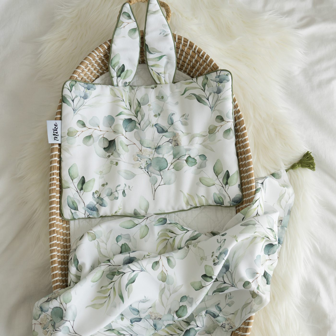 Możesz stworzyć śliczny zestaw razem z bambusową poduszką z uszkami lub motylkiem.