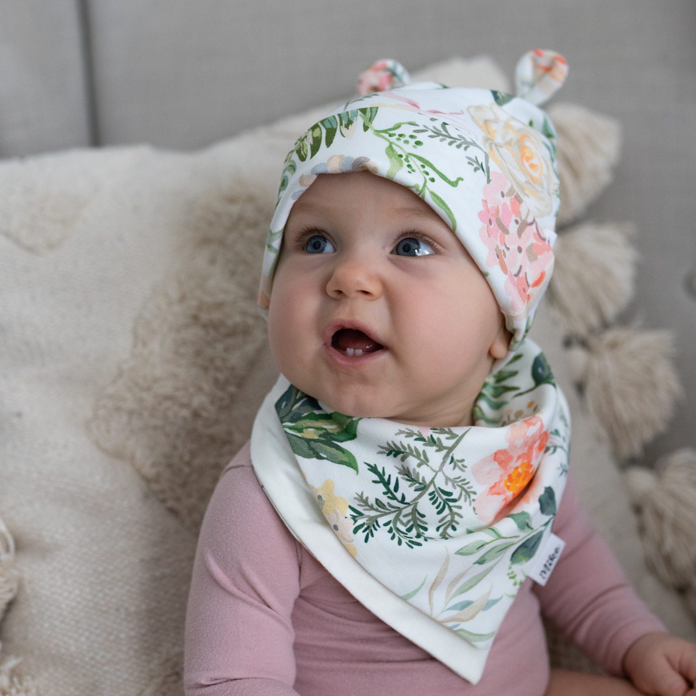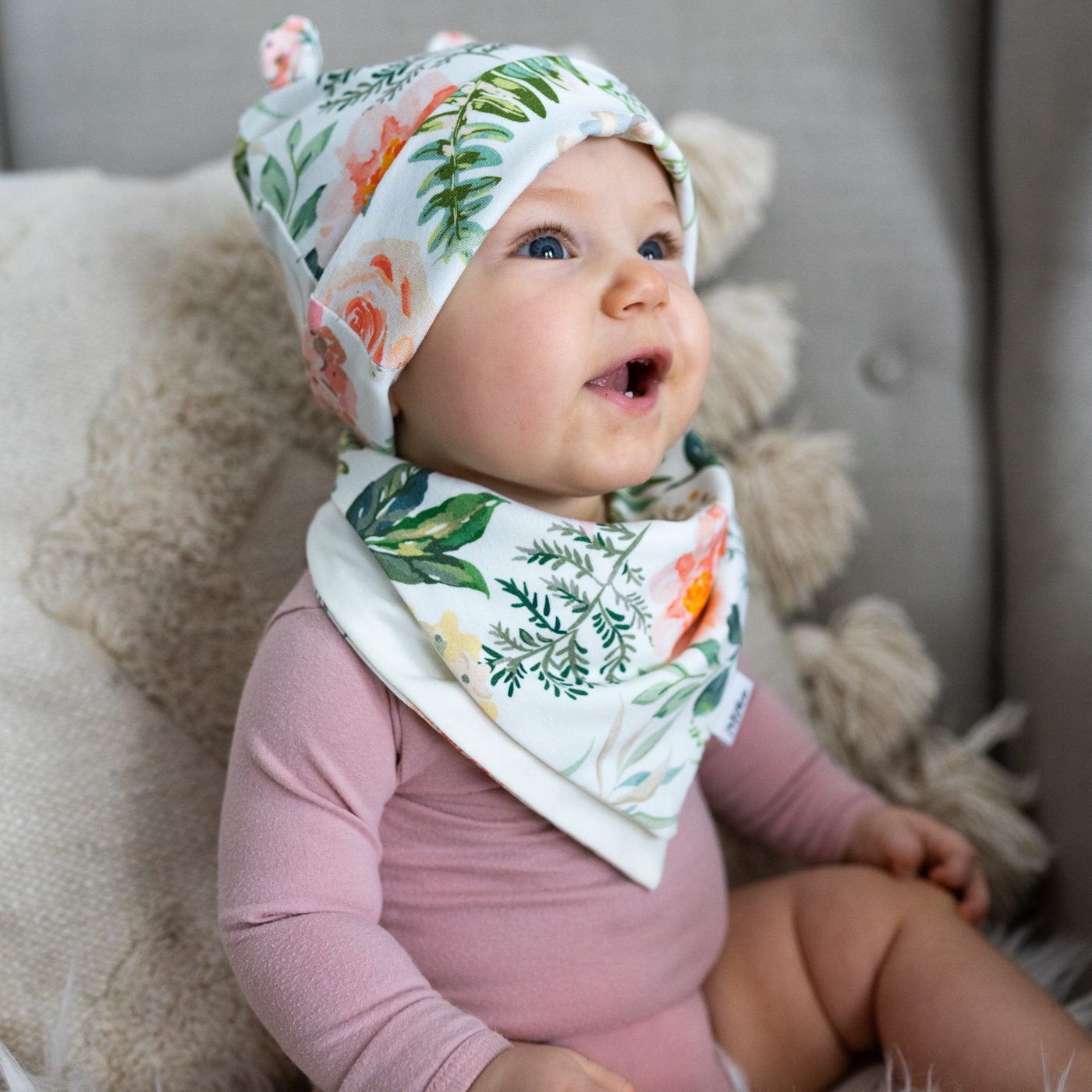 Nasza apaszka jest wielofunkcyjna: może służyć jako tradycyjna apaszka, śliniaczek lub chustka na główkę.