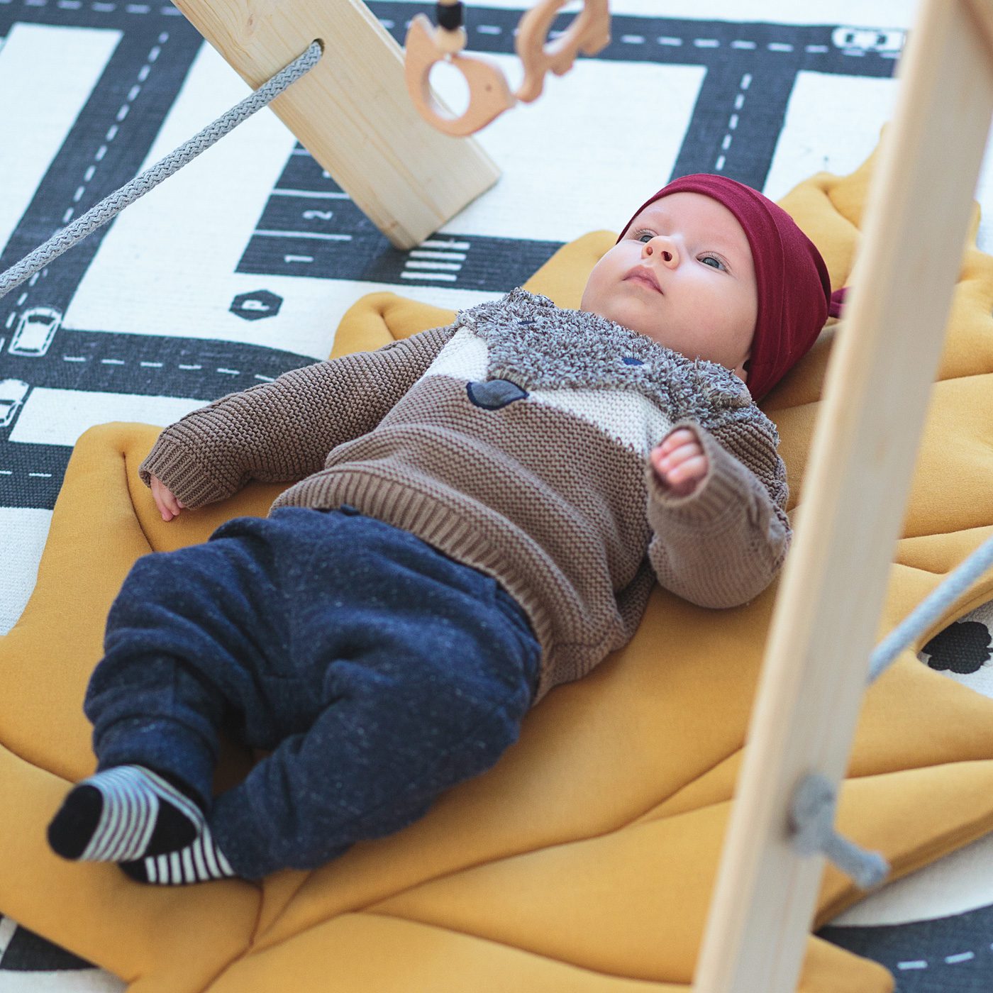 Nasza mata nie jest typową matą edukacyjną – doskonale sprawdzi się również, jako element dekoracyjny w każdym wnętrzu. Będzie wyglądała świetnie na kanapie, łóżku czy jako dywanik przy łóżeczku.