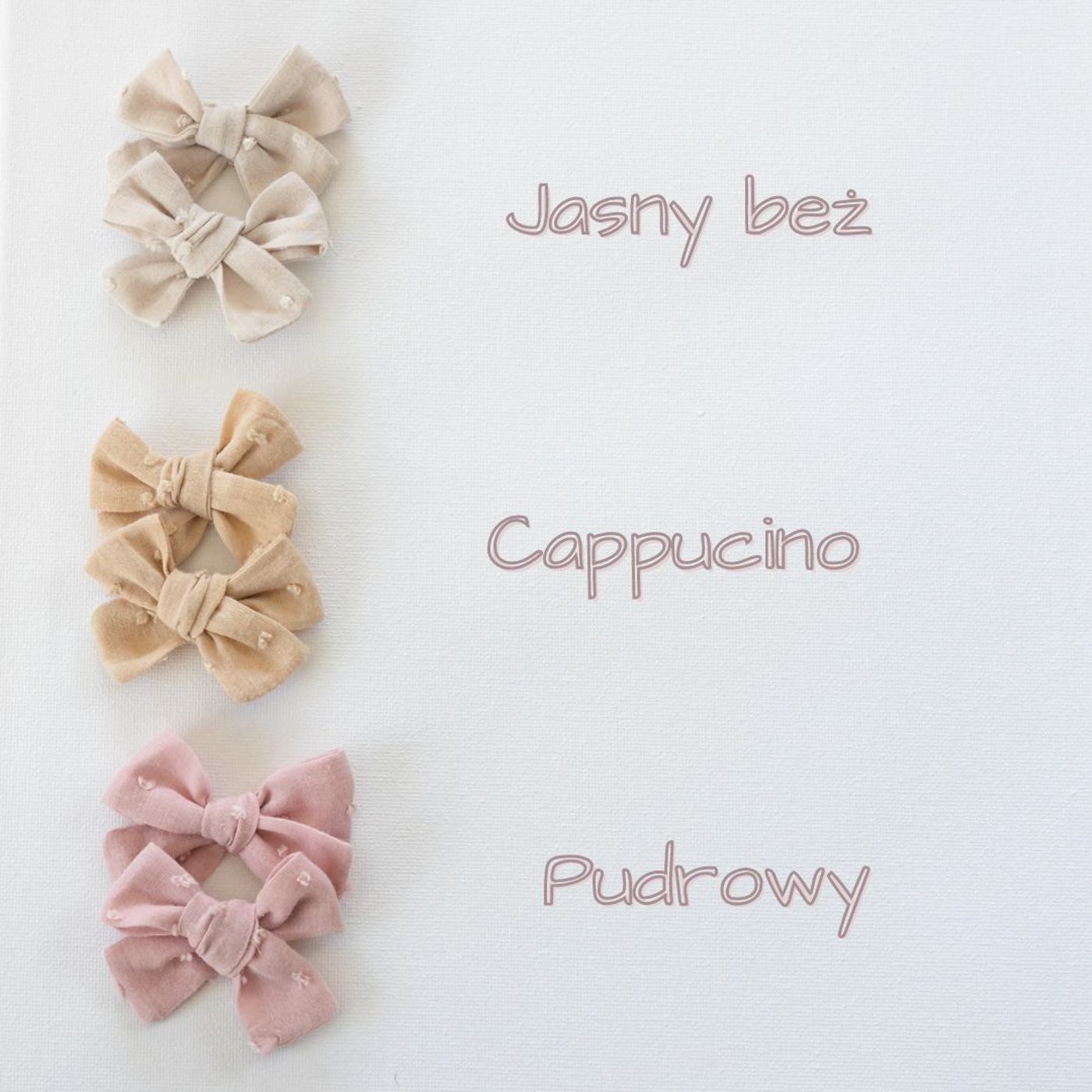| Kolor kokardki | Jasny beż, Capuccino, Pudrowy |