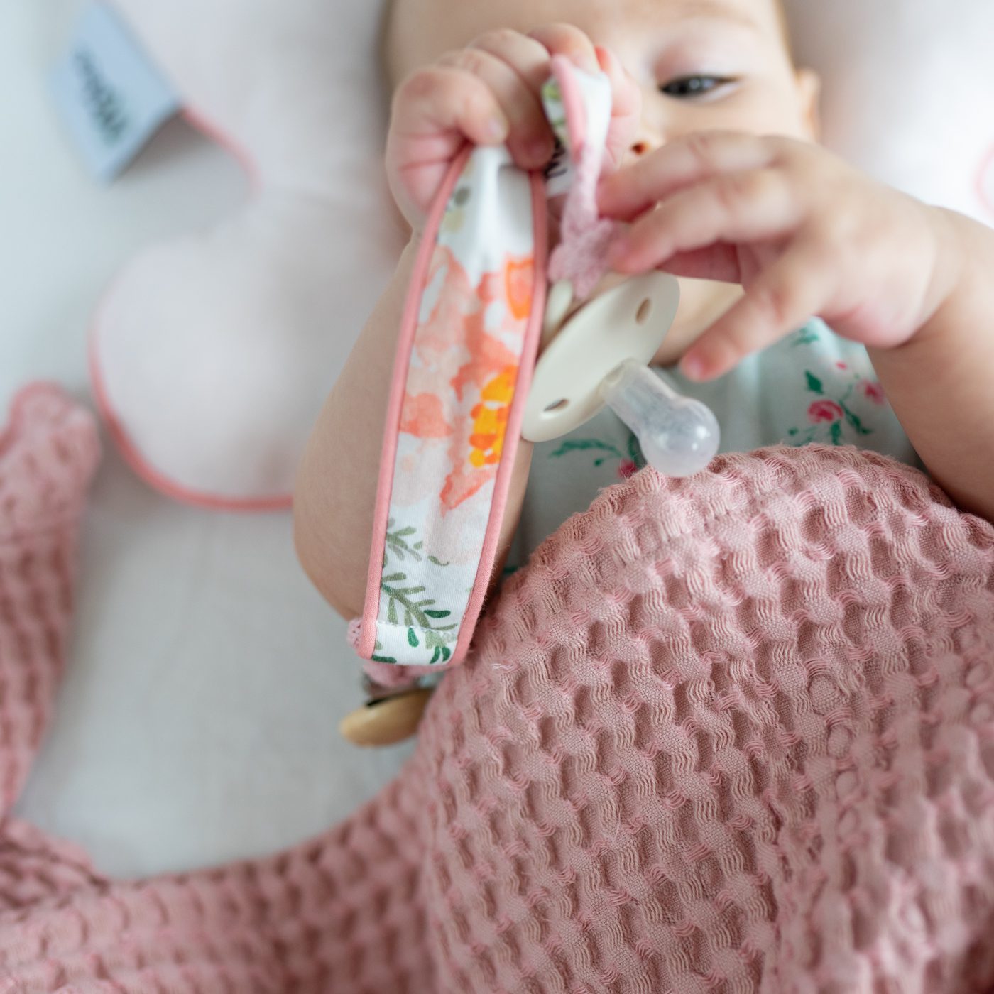 Zawieszka pomaga zachować smoczek w czystości oraz zapobiega ciągłemu gubieniu.