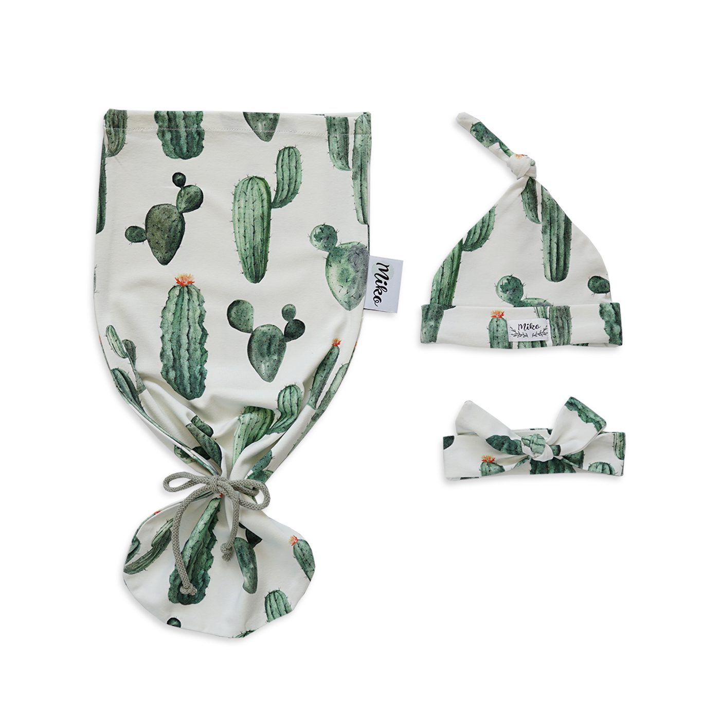 Nasze otulaczki szyjemy z najwyższej jakości dzianiny. Dostępne są w zestawie z opaską, lub czapeczką.