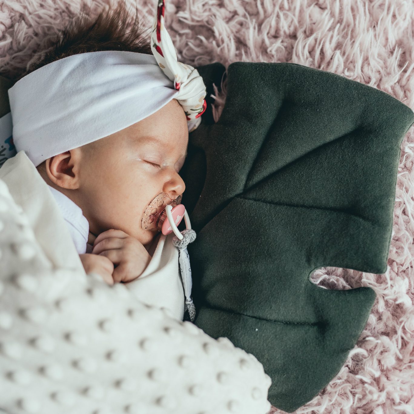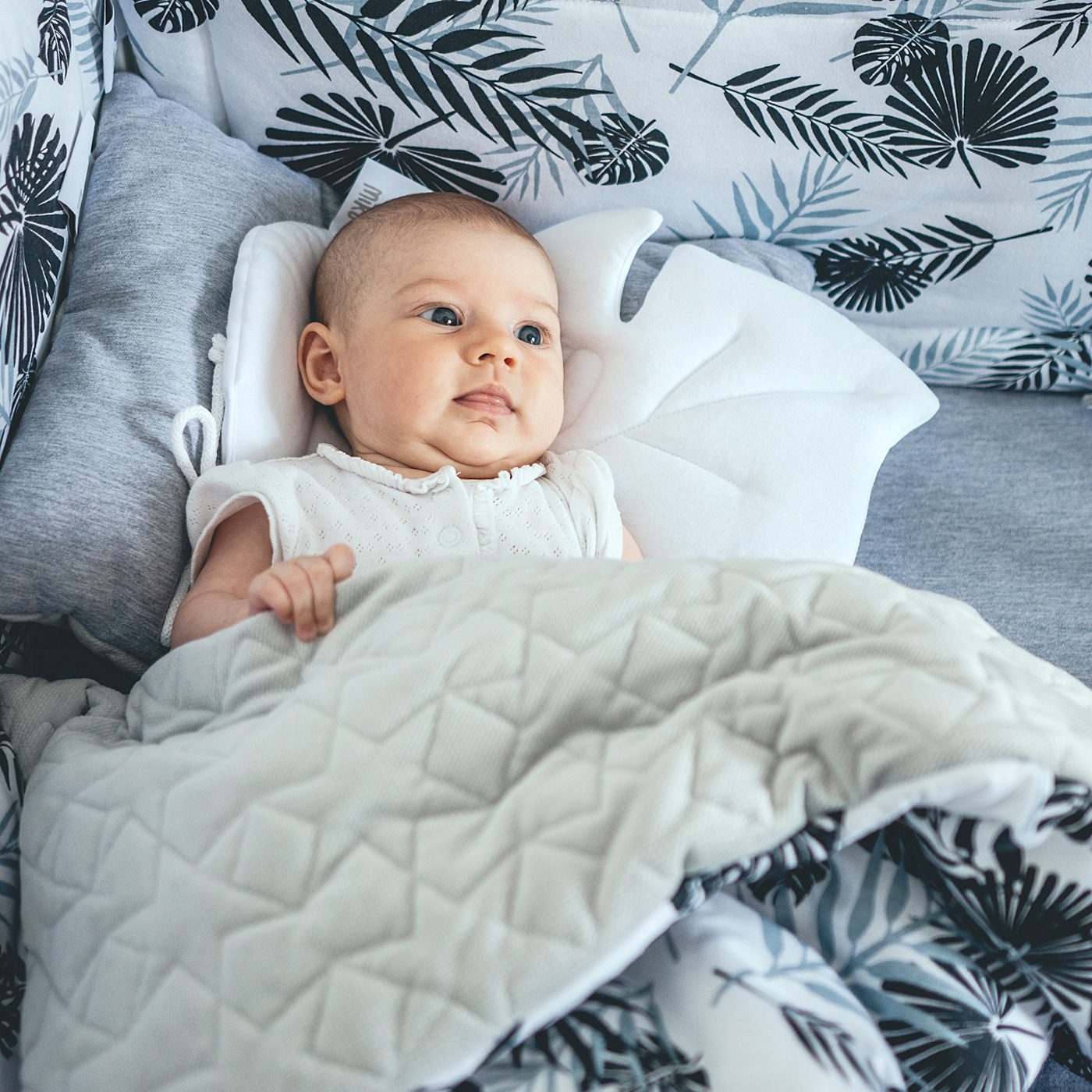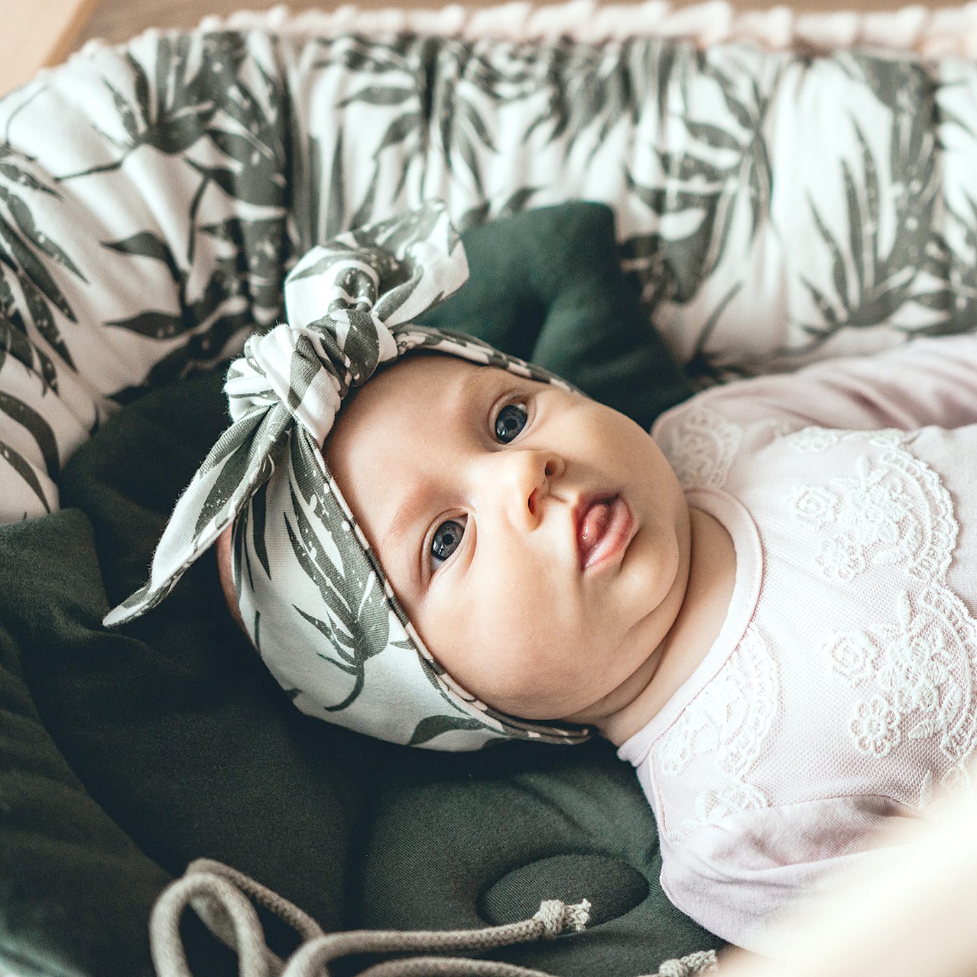 Jej unikatowy kształt sprawia, że jest przepiękną dekoracją, ale przede wszystkim praktyczną, płaską poduszeczką idealną od pierwszych dni życia dziecka.