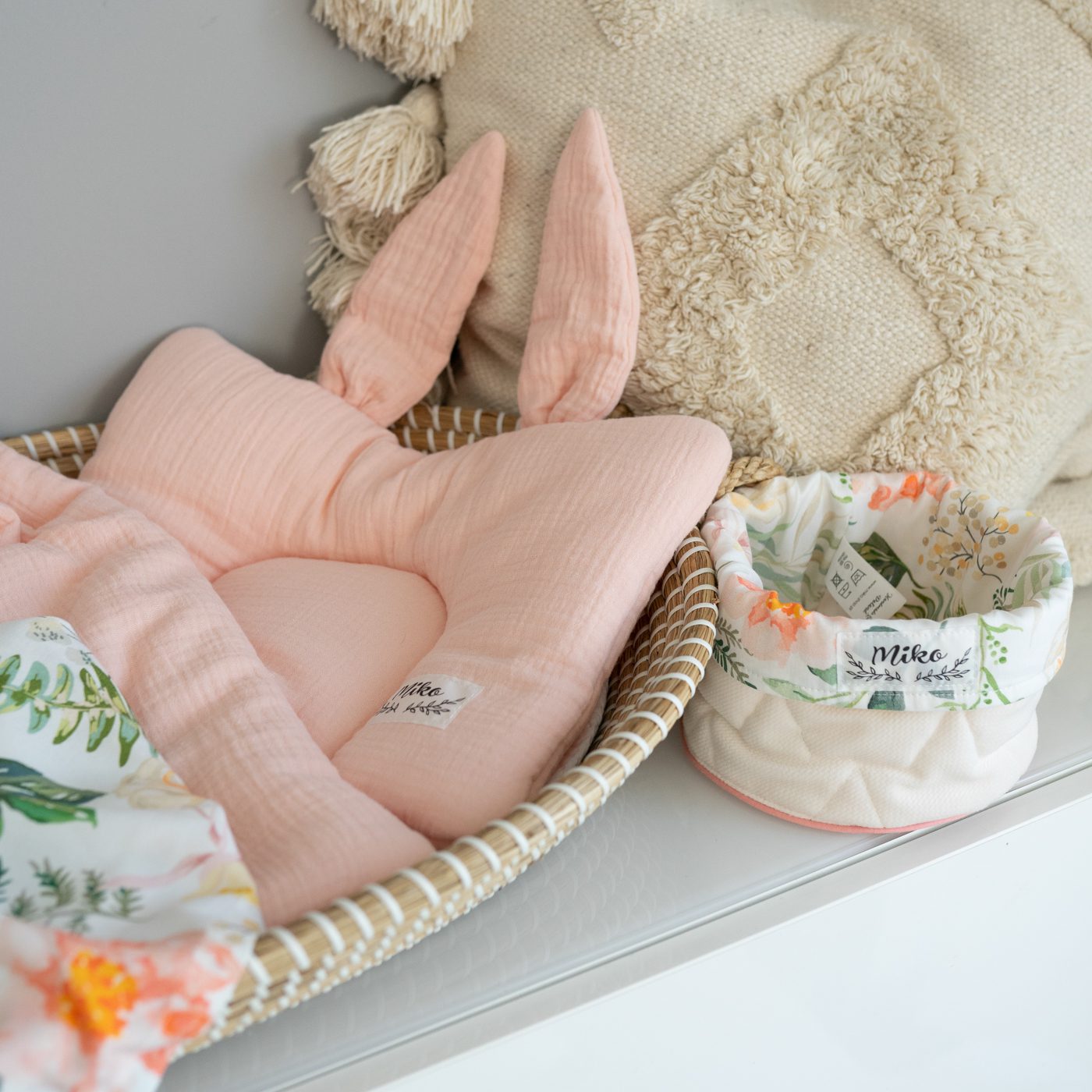 Poduszka świetnie nadaje się do kompletu z muślinowym otulaczem dostępnym w naszym sklepie.