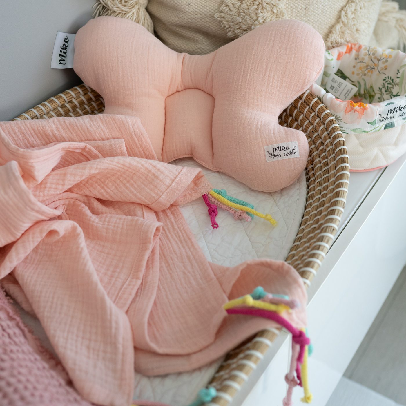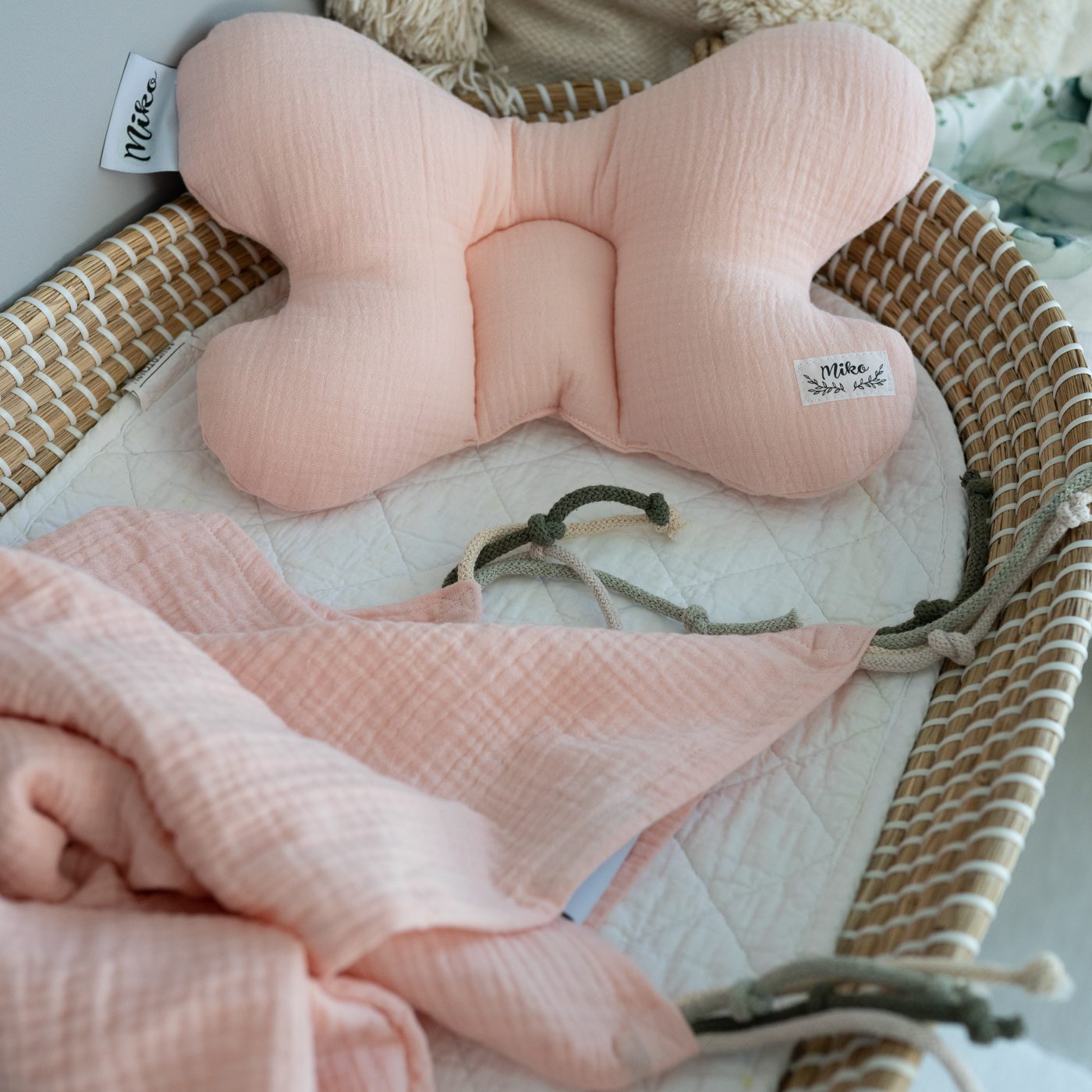 MUŚLINLOVE PEACH muślinowa poduszka motylek