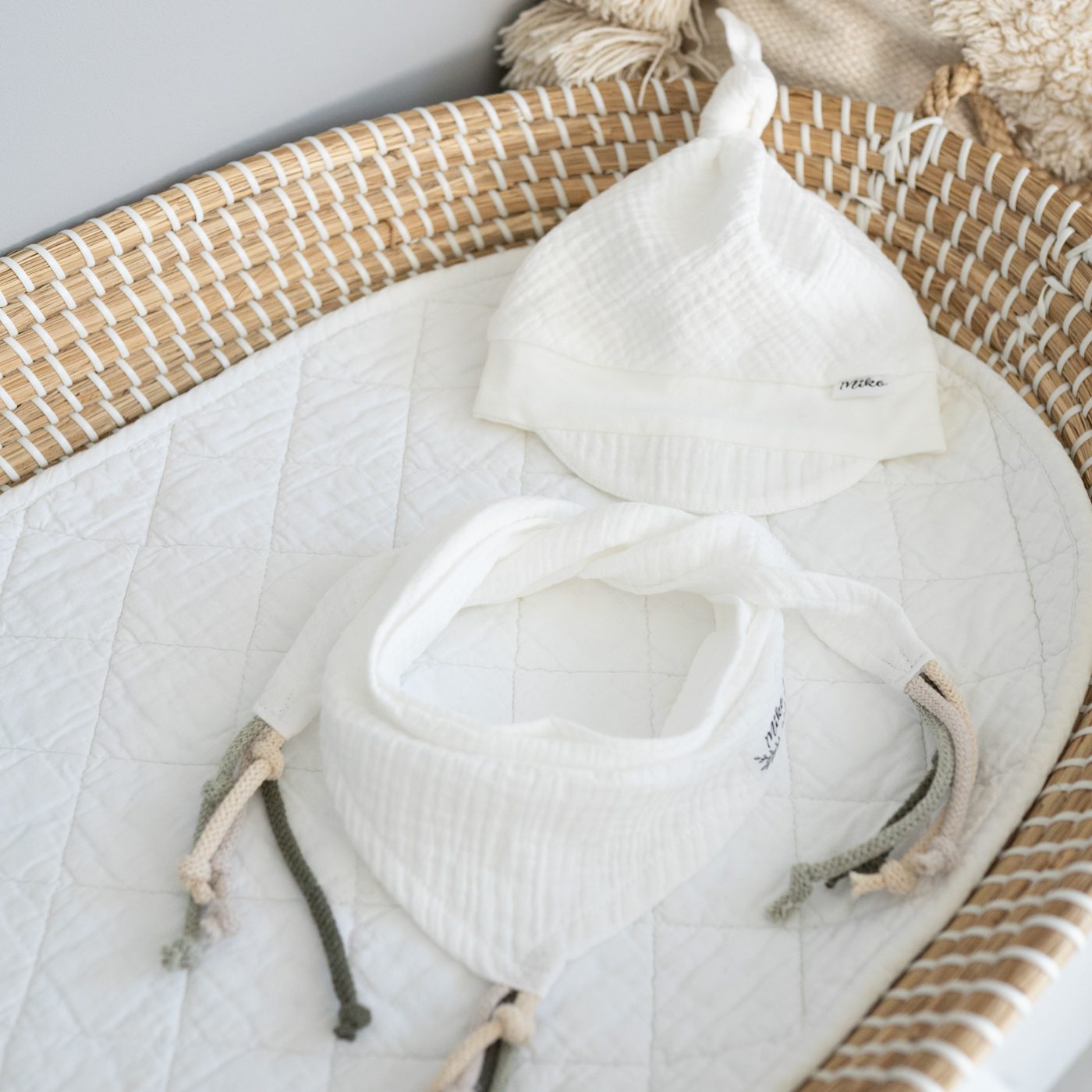 Nasza muślinowa chustka – apaszka ochroni główkę dziecka przed wiatrem i promieniami słonecznymi.