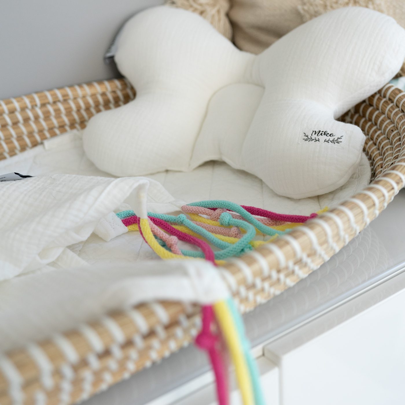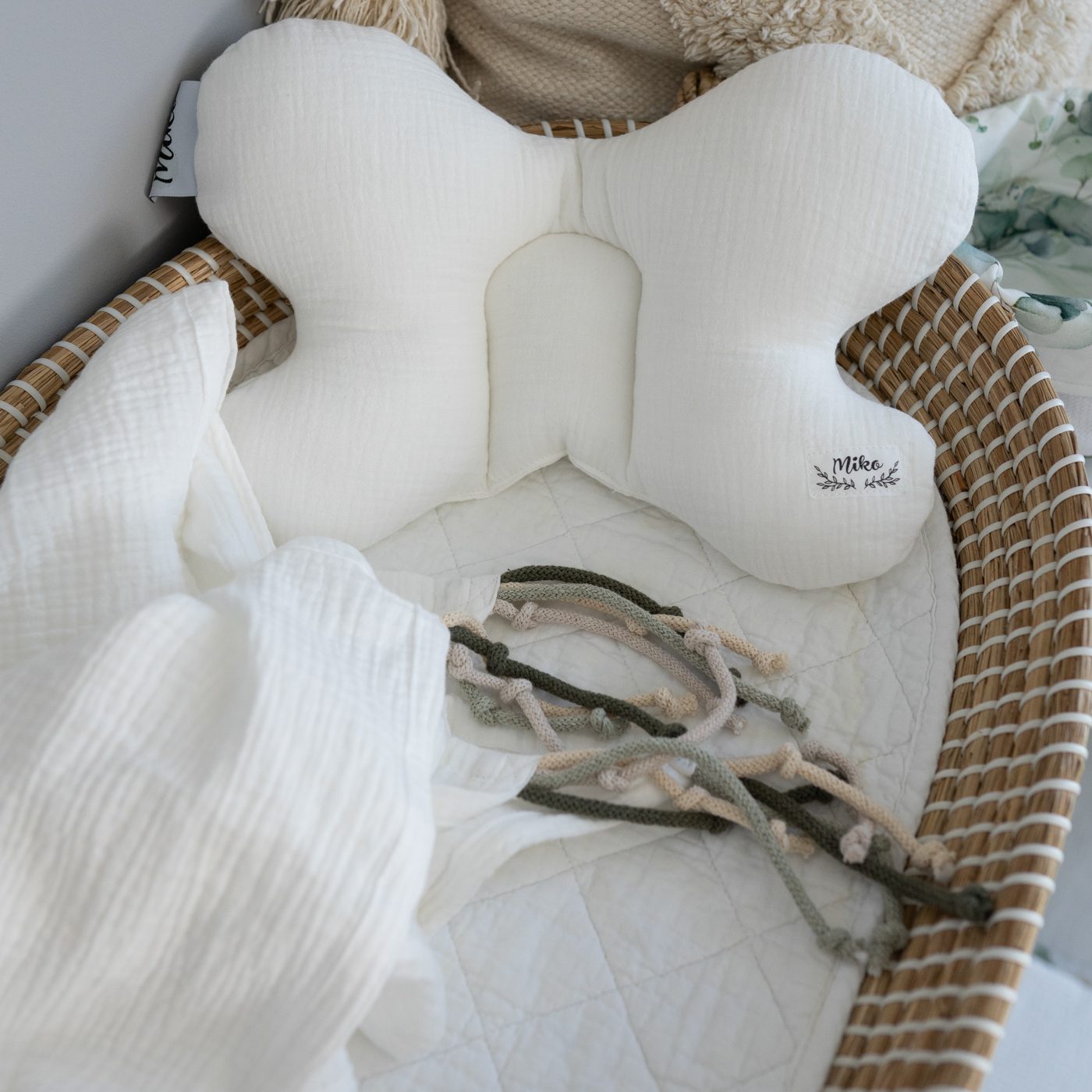Muślinowa poduszka antywstrząsowa przeznaczona do nosidełka, wózka lub fotelika.